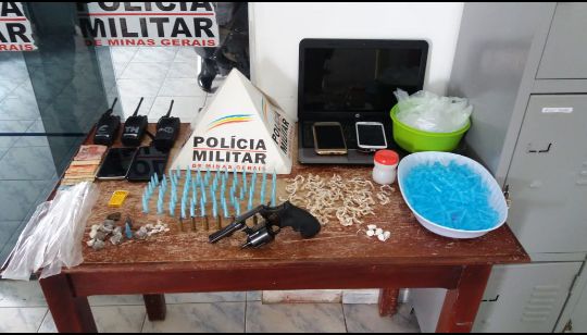 A Polícia Militar de Águas Formosas, no Vale do Mucuri, prendeu um maior e apreendeu um menor com uma vultuosa quantidade de drogas, uma arma de fogo, munições calibre .38 e vários objetos como notebook, rádios comunicadores e celulares.